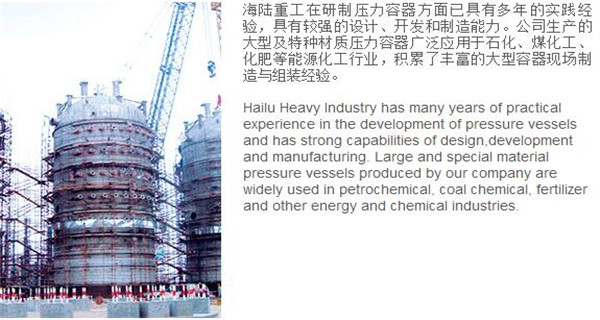 蘇州海陸重工股份有限公司位于江蘇省張家港市開發(fā)區(qū),是國內一流的節(jié)能環(huán)保設備的專業(yè)設計制造企業(yè),目前并已初步形成鍋爐產(chǎn)品、大型壓力容器、核電設備、低溫產(chǎn)品、環(huán)保工程共同發(fā)展的業(yè)務格局。公司創(chuàng)建于1956年,注冊資本51640萬元,占地面積近50萬平米。公司下設八個控股子公司,一個余熱鍋爐研究所,在瑞士、北京、武漢、南京、上海、杭州、廣州等地設立分支機構,擁有雄厚的研發(fā)實力。公司秉承“科技領航、業(yè)界先鋒”的發(fā)展理念,注重研究廢熱、余熱利用和環(huán)境保護相結合的新技術研發(fā),自主設計能力居同行前列;公司承擔過國家863計劃,江蘇省科技成果轉化專項資金,榮獲國家科技進步二等獎,產(chǎn)品擁有核心自主知識產(chǎn)權并取得專利50多項;公司推行國際先進的管理體系標準和認證,擁有 A級鍋爐制造許可證,A1、A2、A3級壓力容器設計和制造許可證,取得了民用核承壓設備制造資格許可證、美國機械工程師學會(ASME)“S”、“U”鋼印,通過了ISO9001質量體系認證、健康體系認證和14000環(huán)境體系認證;公司設備先進,裝備精良,專業(yè)嚴謹?shù)闹圃炖砟畲蛟斐銎焚|非凡、質量一流的“海陸”品牌聲譽。